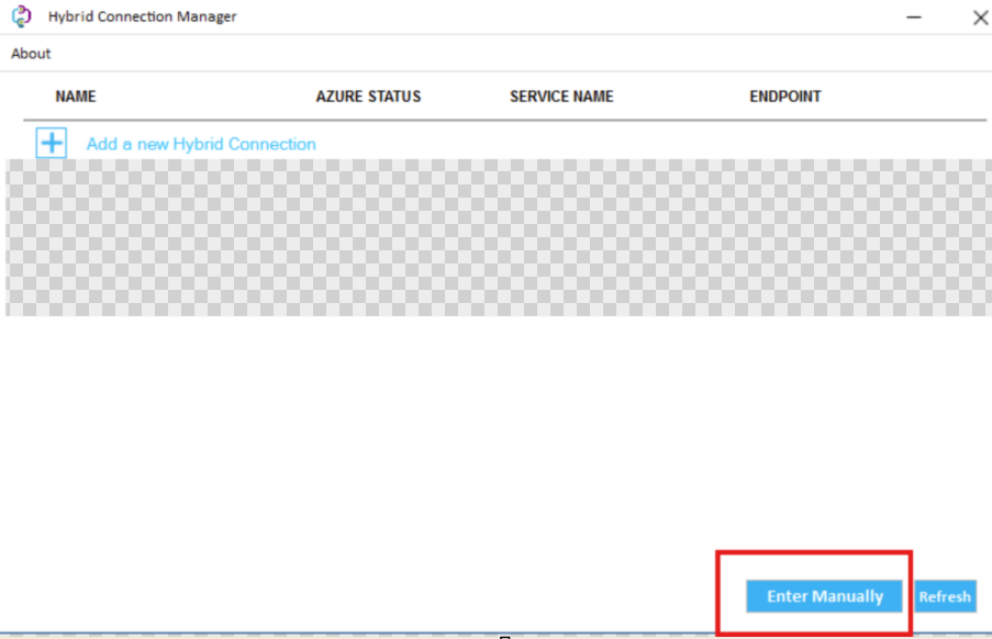 Open Hybrid Connection Manager UI and click Enter Manually and paste the connection string provided by Dooap team. |