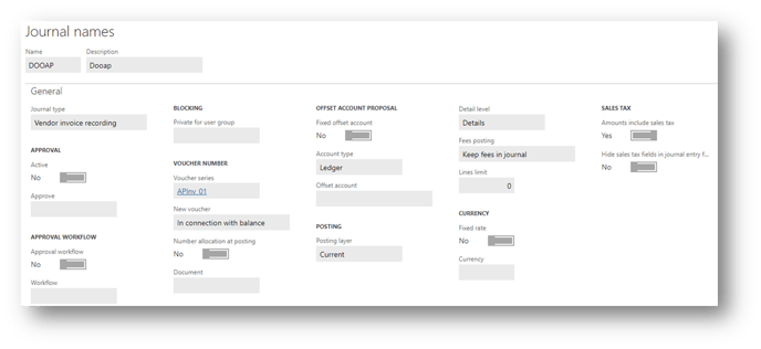 - Journal type: Vendor invoice recording